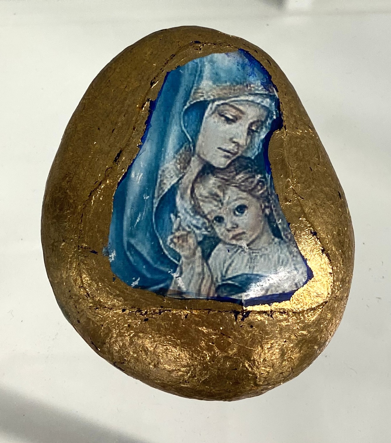 Maria op gouden steen